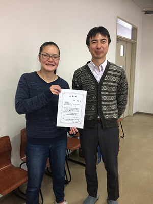 修士論文発表会において、武井夏海さんが最優秀発表賞を受賞しました。